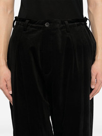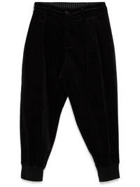 velvet tapered trousers Highlights - Black - Cotton blend - Front button and zip fastening - Elasticated waistband with internal drawstring - Belt loops - Velvet - Two side welt pockets - Pressed crease - Rear button-fastening jetted pocket - Elasticated ankles Imported Composition Lining: Elastane 100% Outer: Cotton 98%, Polyurethane 2% SIZE & FIT Model measurements Height 6 ft 2 in(1.88 m) Bust/Chest 34.25 in(87 cm) Hips 34.64 in(88 cm) Waist 26.77 in(68 cm) FittingInformation Designed for a relaxed tapered leg, allowing a comfortable loose fit above the knee with a closer fit towards the calves The ribbed hem at the ankle offers a close, comfortable fit Made from a midweight non-stretch fabric