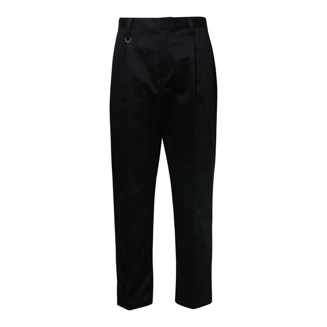 600077350BLK002 / HK-P95-901/00/2 - Elasticated waistband with belt loops - Front button and zip closure - Side slash pockets - Metal D-ring hardware detail - Straight leg silhouette - Cropped ankle length - Premium cotton twill construction Neighborhood Tuck Pants deliver Japanese streetwear excellence with refined tailoring and military-inspired design. Crafted from premium cotton twill in classic black, featuring structured construction with utilitarian details throughout. The relaxed fit and signature Neighborhood aesthetic create versatile pants for contemporary streetwear styling.