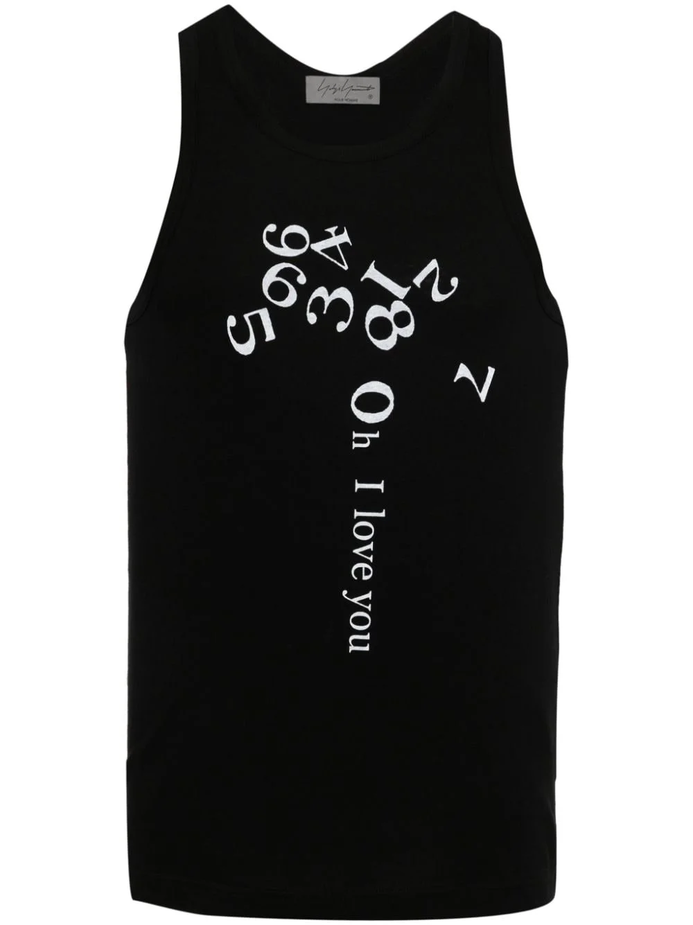 numbers-print cotton tank top Highlights - Black - Cotton - Jersey texture - Scoop neck - Sleeveless - Numbers and text print to the front - Racerback - Straight hem Imported Composition Cotton 100% SIZE & FIT Model measurements Height 6 ft 2 in(1.87 m) Bust/Chest 36.22 in(92 cm) Hips 37 in(94 cm) Waist 27.95 in(71 cm) FittingInformation Designed for a slim fit, offering a comfortable fit that sits just away from the body Made from a midweight non-stretch fabric, this piece offers minimal elasticity when worn This piece fits true to size – take your usual size