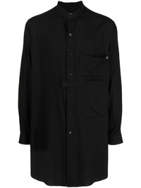 oversized long-sleeve shirt black band collar front button fastening two chest welt pockets chest patch pocket long sleeves buttoned cuffs straight hem Imported Composition Rayon 100% SIZE & FIT Model measurements Height 6 ft 2 in(1.87 m) Bust/Chest 34.25 in(87 cm) Hips 36.22 in(92 cm) Waist 29.52 in(75 cm) FittingInformation This piece fits true to size. We recommend you get your regular size Cut for a loose fit Made with a mid-weight fabric