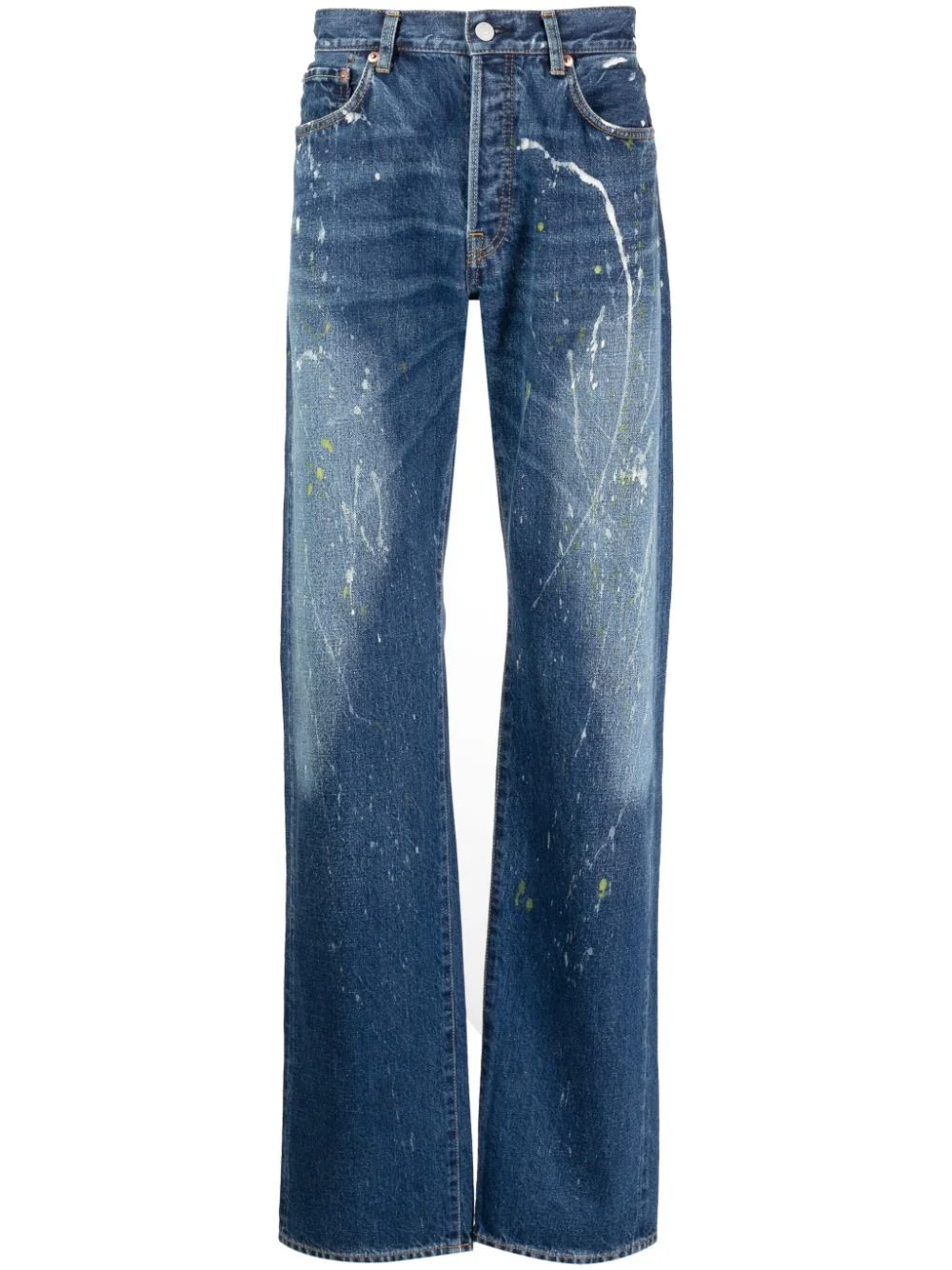 paint-splatter straight-leg jeans Highlights - Indigo blue - Cotton - Washed denim - Paint splatter detail - Faded effect - Applique logo - Mid-rise - Concealed fly and button fastening - Belt loops - Straight leg - Classic five pockets Imported Composition Cotton 100% SIZE & FIT Model measurements Height 6 ft 2 in(1.89 m) Bust/Chest 37.4 in(95 cm) Hips 36.61 in(93 cm) Waist 28.34 in(72 cm) FittingInformation Designed with a wide leg, these jeans offer a loose and roomy fit Sturdy and hard-wearing, this denim piece offers no stretch This piece fits true to size – take your usual size Washing instructions Dry Clean Only