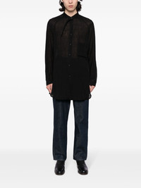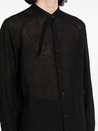 panelled linen shirt Highlights - Black - Linen/flax - Slub texture - Panelled design - Mandarin collar - Front button fastening - Long sleeves - Buttoned cuffs - Chest patch pocket - Short side slits Imported Composition Linen/Flax 100% SIZE & FIT Model measurements Height 6 ft 2 in(1.87 m) Bust/Chest 33.07 in(84 cm) Hips 35.43 in(90 cm) Waist 26.77 in(68 cm) FittingInformation Designed to be unstructured, offering a loose fit throughout Constructed with additional length on the sleeve Made from a midweight non-stretch fabric This piece fits true to size – take your usual size