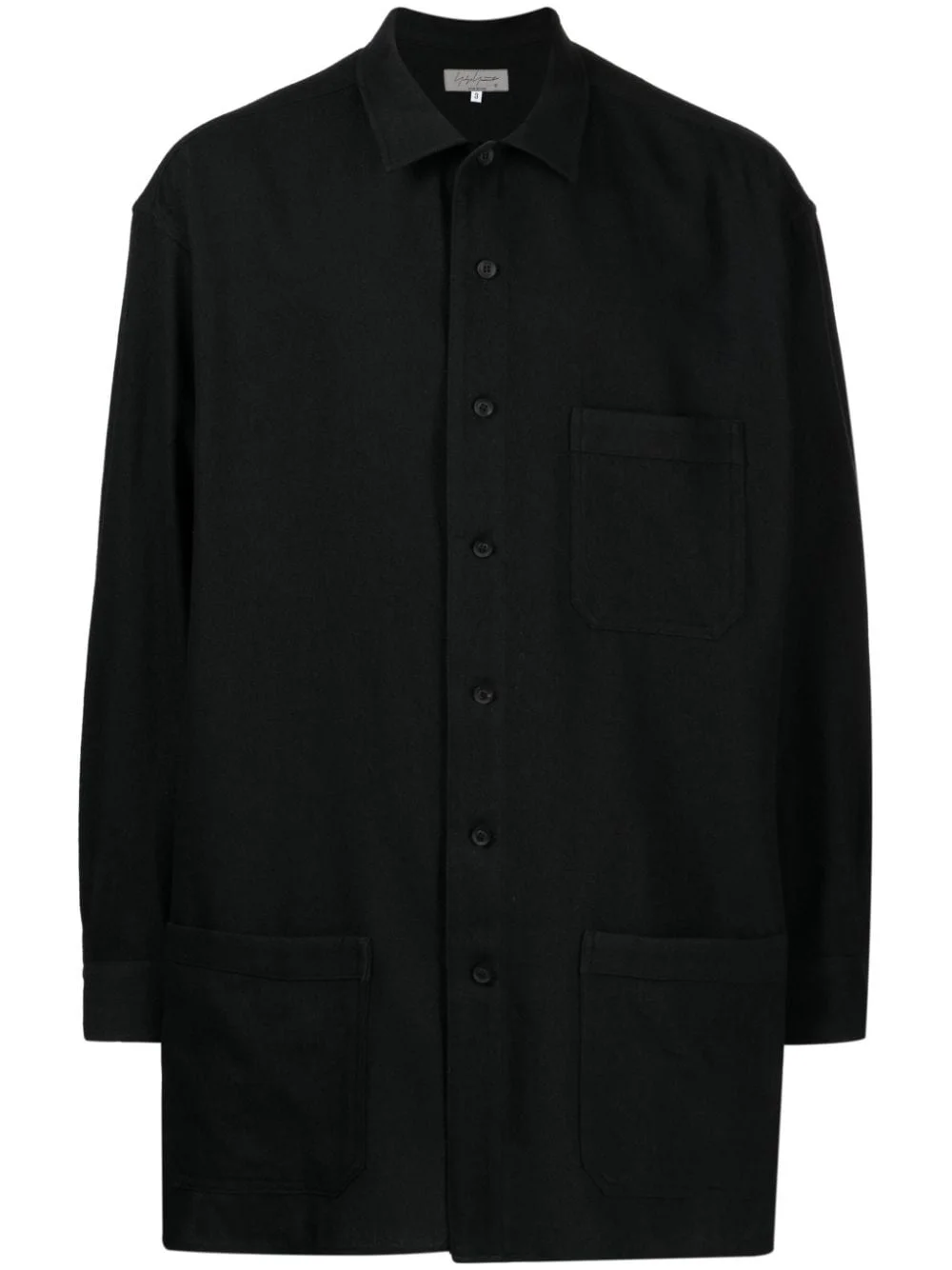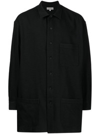 patch-pocket button-down shirt Highlights - Black - Wool-cotton-linen blend - Classic collar - Front button fastening - Drop shoulder - Long sleeves - Buttoned cuffs - Chest patch pocket - Two front patch pockets - Straight hem Imported Composition Wool 42%, Linen/Flax 32%, Cotton 26% SIZE & FIT Model measurements Height 6 ft 2 in(1.87 m) Bust/Chest 33.07 in(84 cm) Hips 35.43 in(90 cm) Waist 26.77 in(68 cm) FittingInformation Designed to be unstructured, offering a loose fit throughout Made from a midweight non-stretch fabric This piece fits true to size – take your usual size Washing instructions Dry Clean Only
