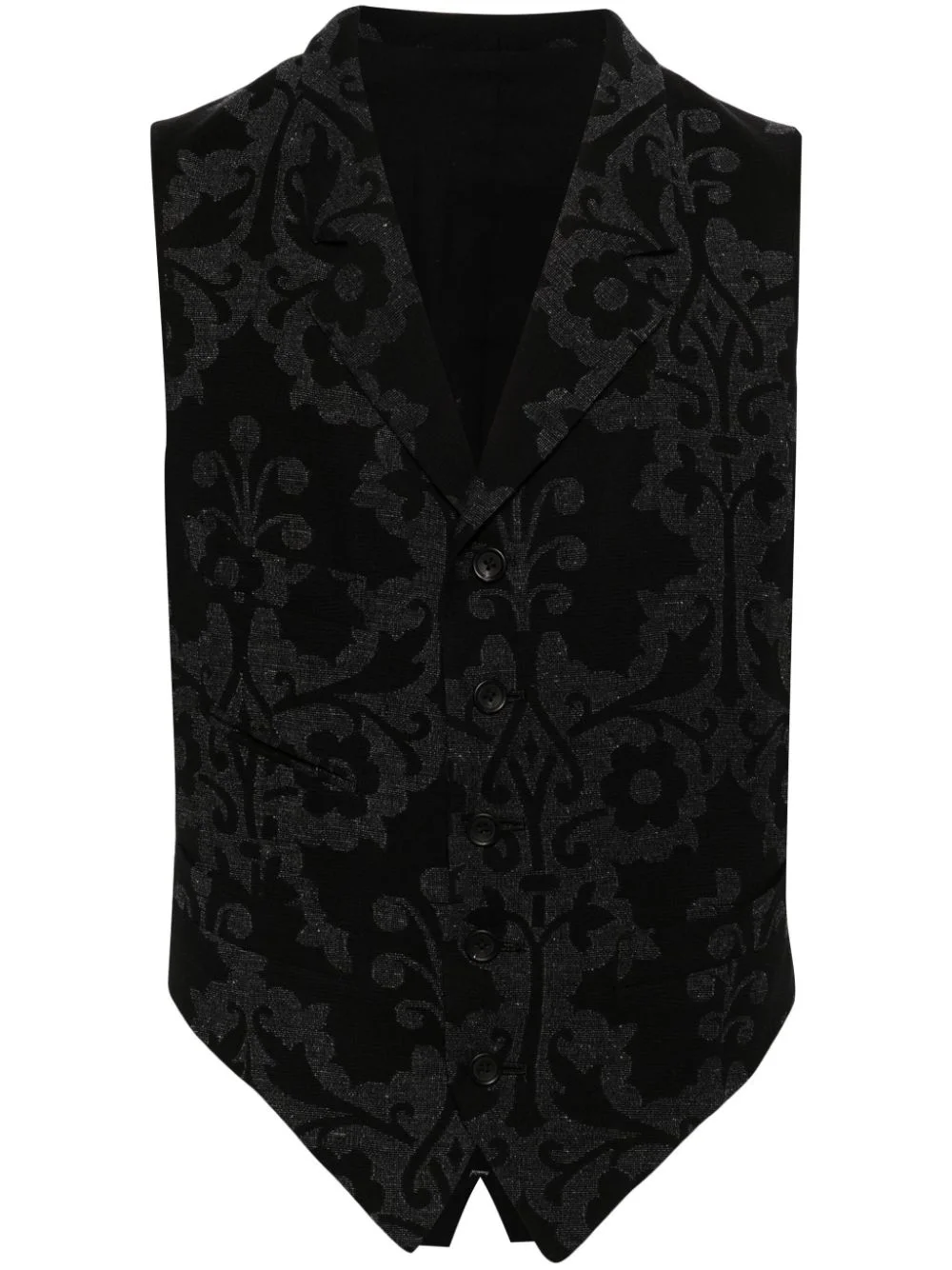 patterned-jacquard waistcoat Highlights - Black - Cotton blend - Contrasting panel detail - Patterned jacquard to the front - Vertical stripe pattern to the rear - Notched lapels - Sleeveless - Front welt pockets - Two front jetted pocket - High-low hem - Front button fastening Imported Composition Outer: Cotton 84%, Polyester 13% Lining: Cotton 100% SIZE & FIT Model measurements Height 6 ft 2 in(1.87 m) Bust/Chest 36.22 in(92 cm) Hips 37 in(94 cm) Waist 27.95 in(71 cm) FittingInformation Designed for a slim fit, offering a comfortable fit that sits just away from the body The adjustable tabs allow for fitted preferences Made from a midweight non-stretch fabric This piece fits true to size – take your usual size