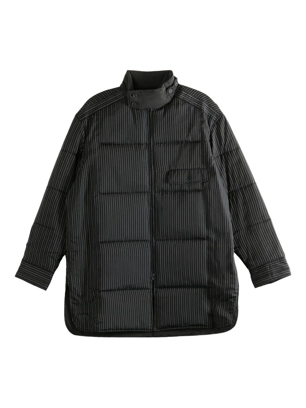 pinstripe pattern padded coat Highlights - Black - Pinstripe pattern - Padded design - Chest pocket - Button fastening Imported Composition Cupro 100% Washing instructions Read Manufacturer Guidelines