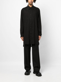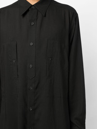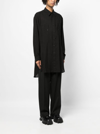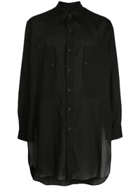 pointed-collar long-length shirt Highlights - Jet black - Lightweight - Pointed flat collar - Front button fastening - Long sleeves - Buttoned cuffs - Two button-fastening chest pockets - Short side slits - High-low hem - Long length Imported Composition Celluloid 100% SIZE & FIT Model measurements Height 6 ft 2 in(1.88 m) Bust/Chest 31.88 in(81 cm) Hips 35.82 in(91 cm) Waist 27.55 in(70 cm) FittingInformation Designed to be unstructured, offering a loose fit throughout Made from a midweight non-stretch fabric, this piece offers minimal elasticity when worn This piece fits true to size – take your usual size Washing instructions Dry Clean Only