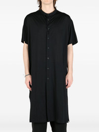 printed jersey shirt Highlights - Black - Front button fastening - Side slits - Band collar - Short sleeves Imported Composition Cotton 77%, Polyamide 23% Washing instructions Read Manufacturer Guidelines