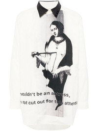 Puncture M A-Stabbing Women shirt Highlights - Off-white/black - Cotton - Two-tone design - Graphic print to the front - Classic collar - Concealed front button fastening - Long sleeves - Curved hem Imported Composition Cotton 100% SIZE & FIT Model measurements Height 6 ft 2 in(1.87 m) Bust/Chest 33.07 in(84 cm) Hips 35.43 in(90 cm) Waist 26.77 in(68 cm) FittingInformation Designed to be unstructured, offering a loose fit throughout Constructed with additional length on the sleeve Made from a midweight non-stretch fabric This piece fits true to size – take your usual size