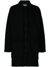 raw-edge knitted cardigan Highlights - Black - Wool-cotton blend - Knitted construction - Spread collar - Drop shoulder - Front button fastening - Long sleeves - Rolled cuffs - Two front patch pockets - Raw edge - Thigh-length Imported Composition Outer: Wool 50%, Cotton 50% SIZE & FIT Model measurements Height 6 ft 2 in(1.87 m) Bust/Chest 33.07 in(84 cm) Hips 35.43 in(90 cm) Waist 26.77 in(68 cm) FittingInformation Designed for an oversized fit, offering additional room throughout Made from a heavyweight non-stretch fabric This piece fits true to size – take your usual size Washing instructions Dry Clean Only