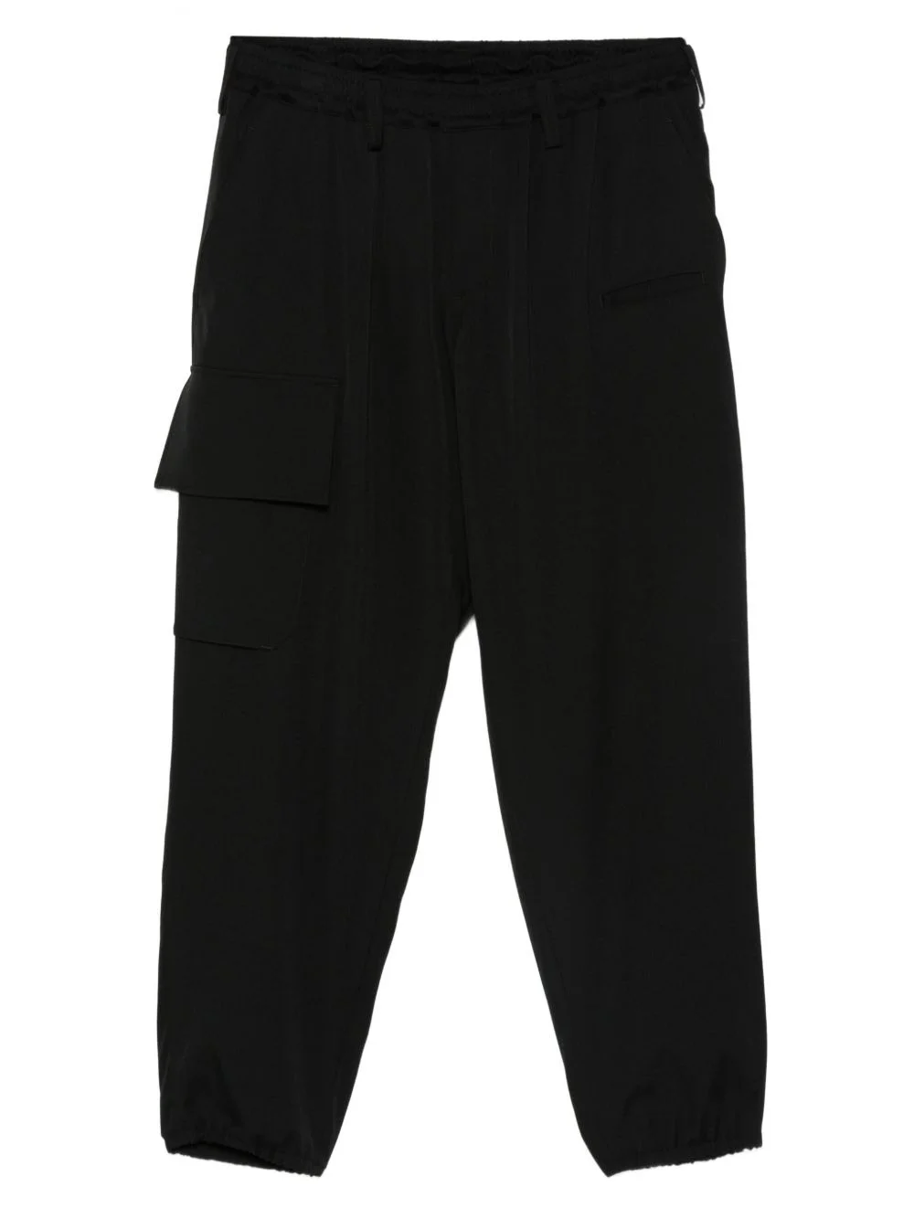 elasticated wool cargo trousers Highlights - Black - Wool - Belt loops - Side cargo pockets - Elasticated hem Imported Composition Wool 100% SIZE & FIT Model measurements Height 6 ft 0 in(1.84 m) Bust/Chest 37.79 in(96 cm) Hips 37 in(94 cm) Waist 31.49 in(80 cm) Washing instructions Dry Clean Only