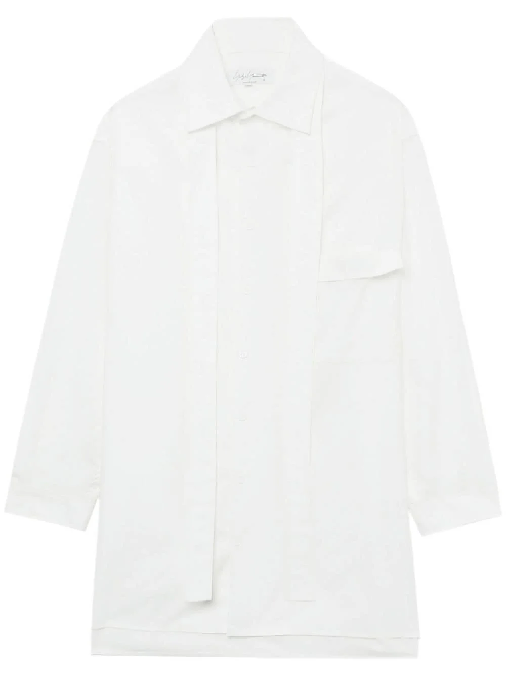 scarf-detail cotton shirt Highlights - White - Cotton - Classic collar - Attached scarf - Front button fastening - Chest flap pocket - Long sleeves - Buttoned-cuff sleeves - Straight hem - Thigh-length Imported Composition Cotton 100%