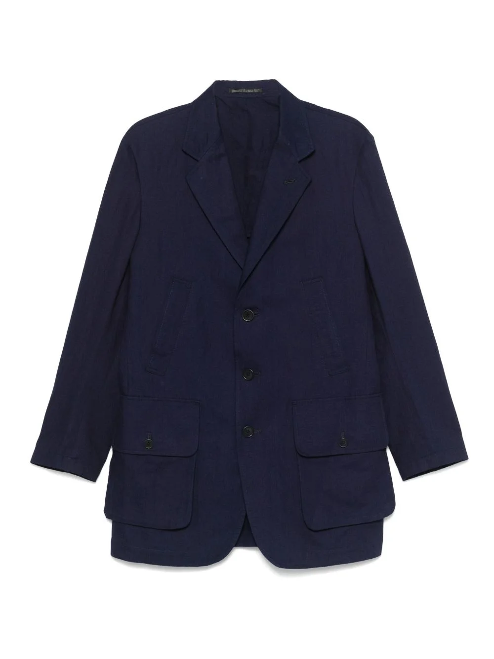 single-breasted blazer Highlights - Navy blue - Front button fastening - Two side welt pockets - Two side flap pockets - American rear vent Imported Composition Outer: Cotton 55%, Linen/Flax 45% Lining: Cupro 100% SIZE & FIT Model measurements Height 6 ft 2 in(1.87 m) Bust/Chest 38.97 in(99 cm) Hips 37.99 in(96.5 cm) Waist 29.52 in(75 cm) FittingInformation Designed for a slim fit, offering a comfortable fit that sits just away from the body The vented hem offers movement at the rear Made from a midweight non-stretch fabric