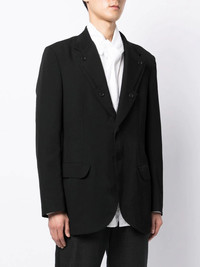 single-breasted fitted blazer black wool classic lapels button fastening long sleeves two side flap pockets Imported Composition Lining: Cupro 100% Body: Wool 100% SIZE & FIT Model measurements Height 6 ft 2 in(1.87 m) Bust/Chest 34.25 in(87 cm) Hips 36.22 in(92 cm) Waist 29.52 in(75 cm) FittingInformation This piece fits true to size. We recommend you get your regular size Cut for a loose fit Made with a mid-weight non-stretch fabric Washing instructions Dry Clean Only