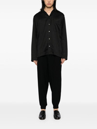 slash pockets trousers Highlights - Black - Wool - Front button and zip fastening - Elasticated drawstring waistband - Two side slash pockets - Button-fastening pocket - Belt loops - Ribbed hem Imported Composition Lining: Cupro 100% Outer: Wool 100% SIZE & FIT Model measurements Height 6 ft 2 in(1.88 m) Bust/Chest 34.25 in(87 cm) Hips 34.64 in(88 cm) Waist 26.77 in(68 cm) FittingInformation Designed for a tapered leg, offering a loose unrestricted fit over the leg with a closer fit towards the ankle Adjust this piece’s waistband to your preference using the drawstring Made from a midweight non-stretch fabric