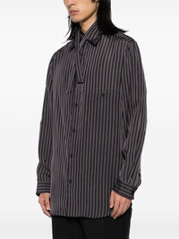 striped shirt Highlights - Charcoal grey - Front button fastening - Stripe print - Detachable collar - Button-fastening chest pocket - Long sleeves - Buttoned cuffs - Curved hem Imported Composition Cupro 100% SIZE & FIT Model measurements Height 6 ft 2 in(1.88 m) Bust/Chest 34.25 in(87 cm) Hips 34.64 in(88 cm) Waist 26.77 in(68 cm) FittingInformation Designed to be unstructured, offering a loose fit throughout Made from a lightweight non-stretch fabric