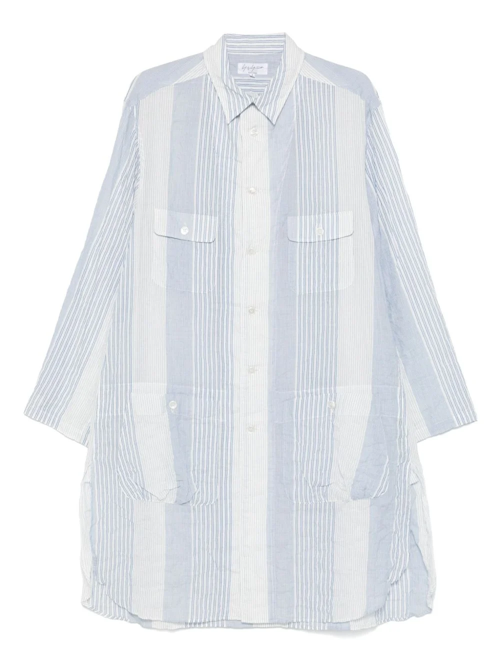 striped shirt Highlights - Light blue - Front button fastening - Two chest flap pockets - Buttoned cuffs - Long sleeves Imported Composition Cotton 98%, Polyurethane 2% SIZE & FIT Model measurements Height 6 ft 0 in(1.84 m) Bust/Chest 37.79 in(96 cm) Hips 37 in(94 cm) Waist 31.49 in(80 cm) FittingInformation Designed to be unstructured, offering a loose fit throughout Made from a midweight non-stretch fabric