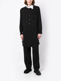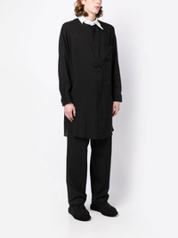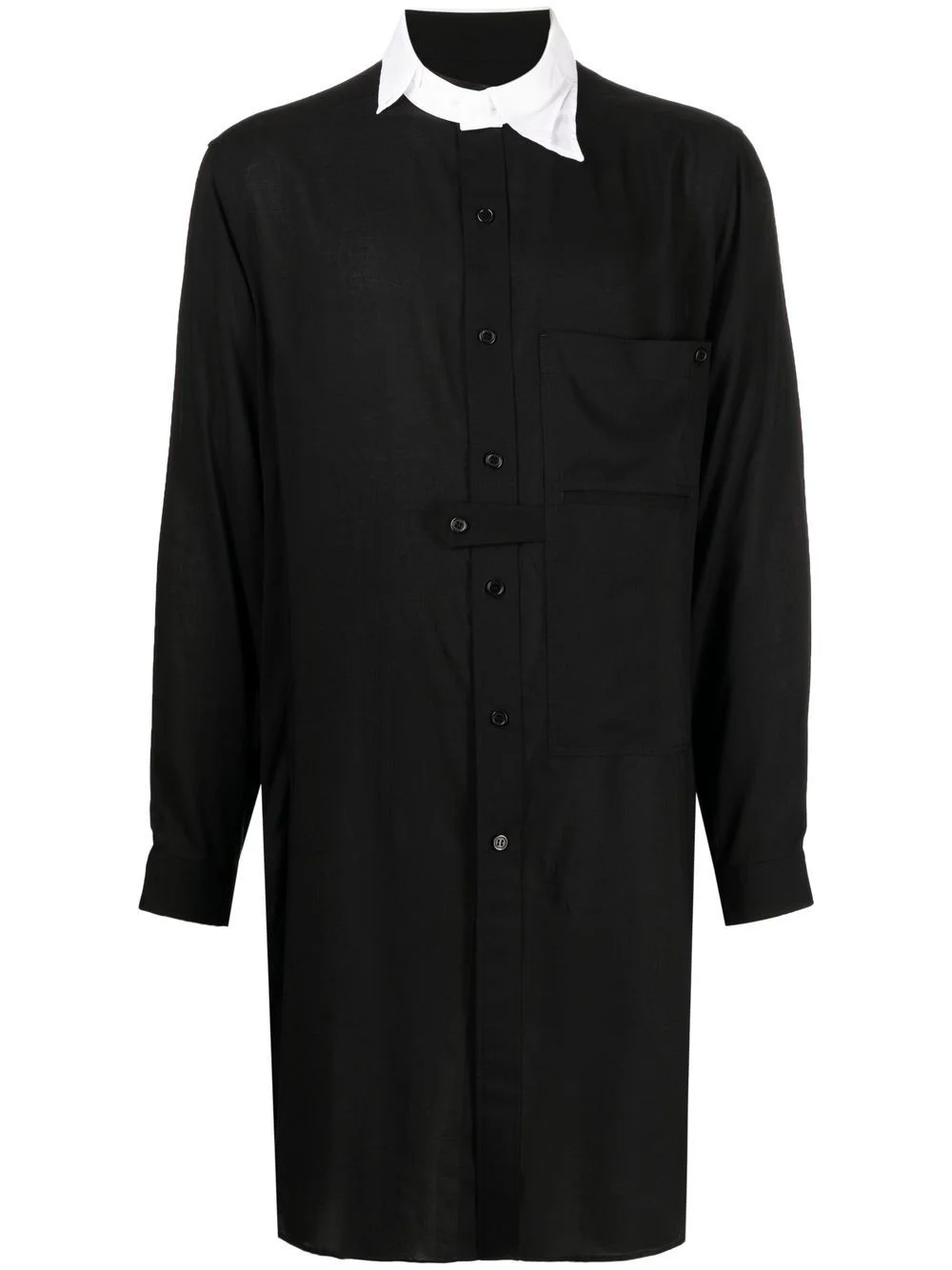 tab-collar long shirt black/white button-down collar contrasting collar front button fastening long sleeves long length Imported Composition Body: Cellulose 100% SIZE & FIT Model measurements Height 6 ft 2 in(1.87 m) Bust/Chest 36.22 in(92 cm) Hips 37.79 in(96 cm) Waist 28.34 in(72 cm) FittingInformation This piece fits true to size. We recommend you get your regular size Cut for a loose fit Made with a mid-weight non-stretch fabric Washing instructions Dry Clean Only