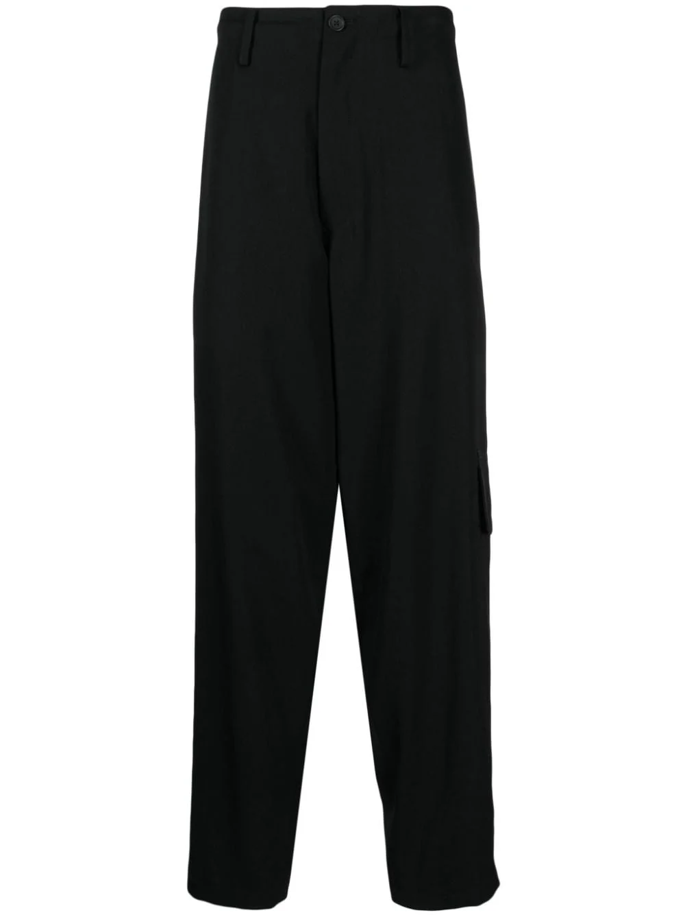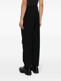 tapered-leg wool trousers Highlights - Black - Wool - Mid-rise - Belt loops - Front button fastening - Two side slash pockets - Two rear button-fastening jetted pockets - Side cargo pocket - Tapered leg Imported Composition Wool 100% SIZE & FIT Model measurements Height 6 ft 2 in(1.88 m) Bust/Chest 31.88 in(81 cm) Hips 35.82 in(91 cm) Waist 27.55 in(70 cm) FittingInformation Designed for a tapered leg, offering a loose unrestricted fit over the leg with a closer fit towards the ankle Adjust this piece’s waistband to your preference using the drawstring Made from a midweight non-stretch fabric This piece fits true to size – take your usual size