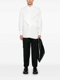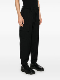 wool trousers Highlights - Black - Wool - Twill weave - Logo patch to the rear - Mid-rise - Elasticated waistband with internal drawstring - Front welt pocket - Side cargo pocket - Two rear patch pockets - Tapered leg - Elasticated ankles Imported Composition Wool 100% SIZE & FIT Model measurements Height 6 ft 1 in(1.86 m) Bust/Chest 37.4 in(95 cm) Hips 36.22 in(92 cm) Waist 29.52 in(75 cm) FittingInformation Designed for a relaxed tapered leg, allowing a comfortable loose fit above the knee with a closer fit towards the calves Adjust this piece’s waistband to your preference using the drawstring Made from a midweight non-stretch fabric This piece fits true to size – take your usual size