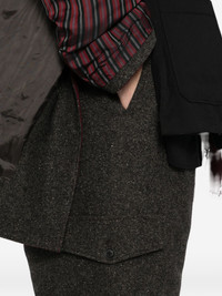 tweed side-pocket trousers Highlights - Cedar brown - Concealed front button, hook and zip fastening - Internal drawstring fastening waist - Two side welt pockets - Two rear welt pockets Imported Composition Wool 69% Outer: Nylon 11%, Polyester 10%, Silk 6%, Acrylic 3%, Polyurethane 1% Lining: Cupro 100% SIZE & FIT Model measurements Height 6 ft 1 in(1.86 m) Bust/Chest 33.46 in(85 cm) Hips 35.43 in(90 cm) Waist 31.1 in(79 cm) FittingInformation Designed for a relaxed tapered leg, allowing a comfortable loose fit above the knee with a closer fit towards the calves Adjust this piece’s waistband to your preference using the drawstring Made from a padded non-stretch fabric, giving it no natural elasticity Washing instructions Dry Clean Only