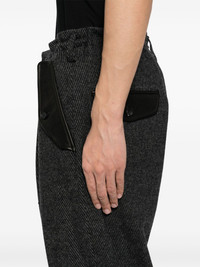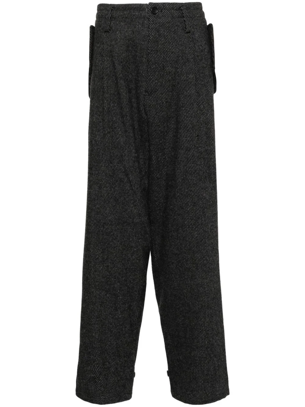 twill tapered trousers Highlights - Black - Wool blend - Front button and zip fastening - Belt loops - Twill weave - Two side button-fastening pockets - Two rear button-fastening pockets Imported Composition Outer: Wool 70%, Polyester 18%, Nylon 7%, Acrylic 5% Lining: Cupro 100% SIZE & FIT Model measurements Height 6 ft 2 in(1.88 m) Bust/Chest 34.25 in(87 cm) Hips 34.64 in(88 cm) Waist 26.77 in(68 cm) FittingInformation Designed for a relaxed straight leg, allowing a comfortable and loose fit over the leg Made from a heavyweight non-stretch fabric