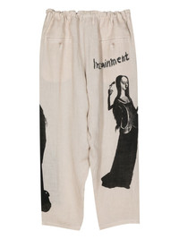 U-Lady print tapered trousers Highlights - Ecru - Linen/flax - Elasticated waistband - Belt loops - Two side inset pockets - All-over u-lady print - Two rear welt pockets - Tapered leg - Concealed fly and button fastening Imported Composition Lining: Cupro 100% Outer: Linen/Flax 100%