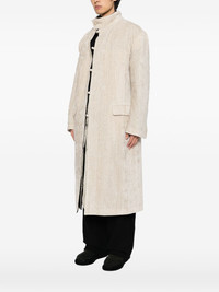 velvet stand-collar coat Highlights - Ivory - Textured finish - Front button fastening - Stand collar - Front patch pockets - Reversible Imported Composition Outer: Cupro 100% Lining: Nylon 100% Polyester 100% SIZE & FIT Model measurements Height 6 ft 2 in(1.88 m) Bust/Chest 34.25 in(87 cm) Hips 34.64 in(88 cm) Waist 26.77 in(68 cm) FittingInformation Designed to be unstructured, offering a loose fit throughout The detachable panel offers the preference for a different fit Made from a padded non-stretch fabric, giving it no natural elasticity Washing instructions Dry Clean Only