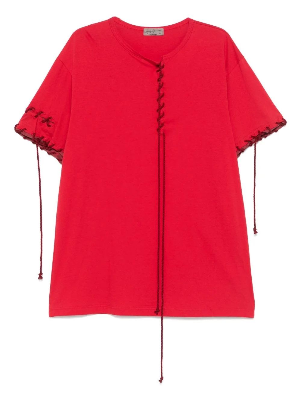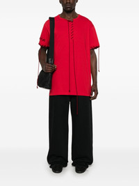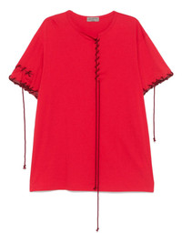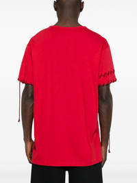 whipstitch-trim T-shirt Highlights - Crimson - Front lace-up fastening - Short sleeves - Straight hem Imported Composition Cotton 100% SIZE & FIT Model measurements Height 6 ft 0 in(1.84 m) Bust/Chest 37.79 in(96 cm) Hips 37 in(94 cm) Waist 31.49 in(80 cm) FittingInformation Designed for a regular fit allowing for a comfortably loose fit throughout the body Made from a midweight non-stretch fabric, this piece offers minimal elasticity when worn