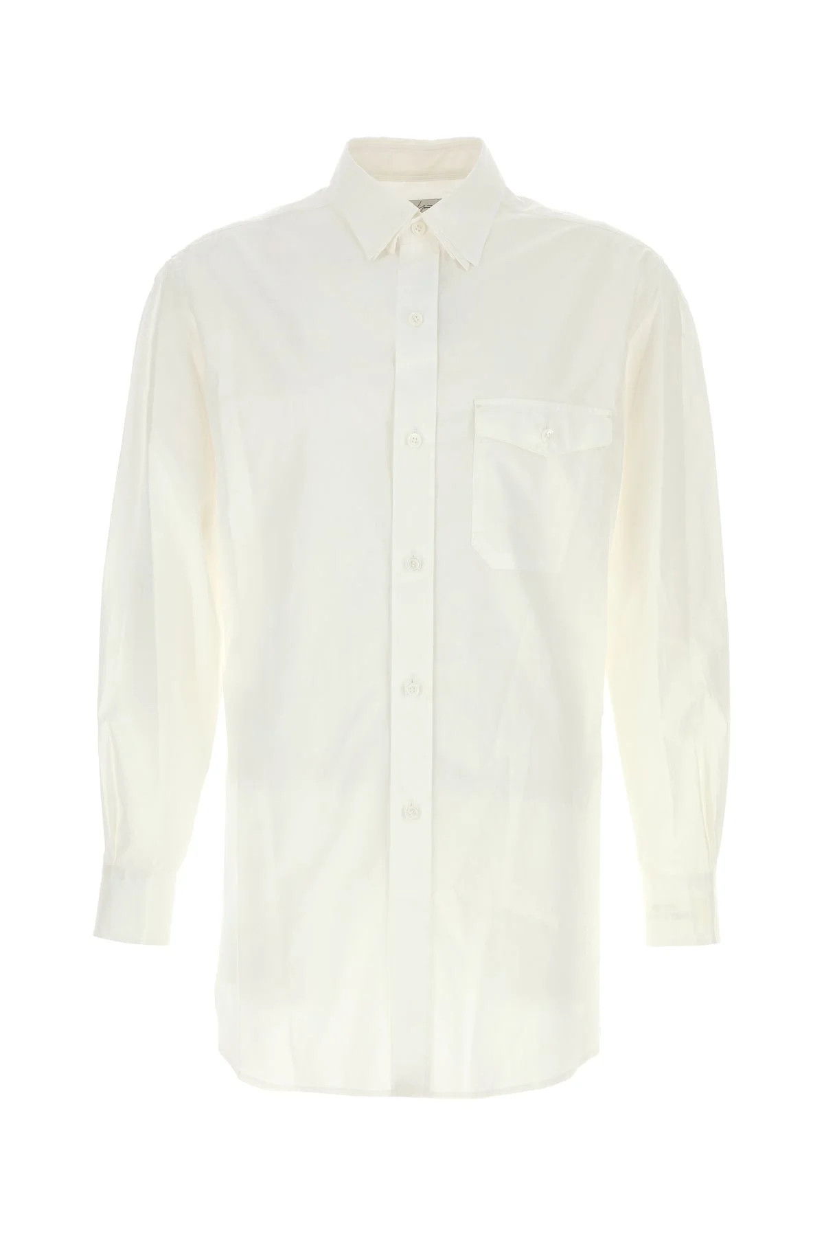Long-cut shirt realized in pure cotton characterized by peculiar layered collar. - Buttons closure - Chest pocket - Buttoned rounded cuffs - Lateral slits on the hemline - Rear yoke DETAILS White cotton shirt Exterior: 100% Cotton Made in japan Sample size: 3