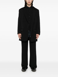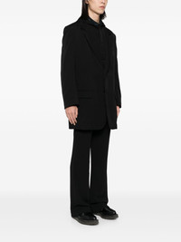 wool gabardine blazer Highlights - Black - Wool - Gabardine weave - Front button fastening - Notched lapels - Shoulder pads - Long sleeves - Decorative button detailing - Chest welt pocket - Two front flap pockets - American rear vent - Full lining - Internal slip pocket Imported Composition Lining: Cupro 100% Outer: Wool 100% SIZE & FIT Model measurements Height 6 ft 2 in(1.87 m) Bust/Chest 33.07 in(84 cm) Hips 35.43 in(90 cm) Waist 26.77 in(68 cm) FittingInformation Designed for a relaxed fit, this piece allows for comfort and movement when worn The vented hem offers movement at the rear Made from a midweight non-stretch fabric