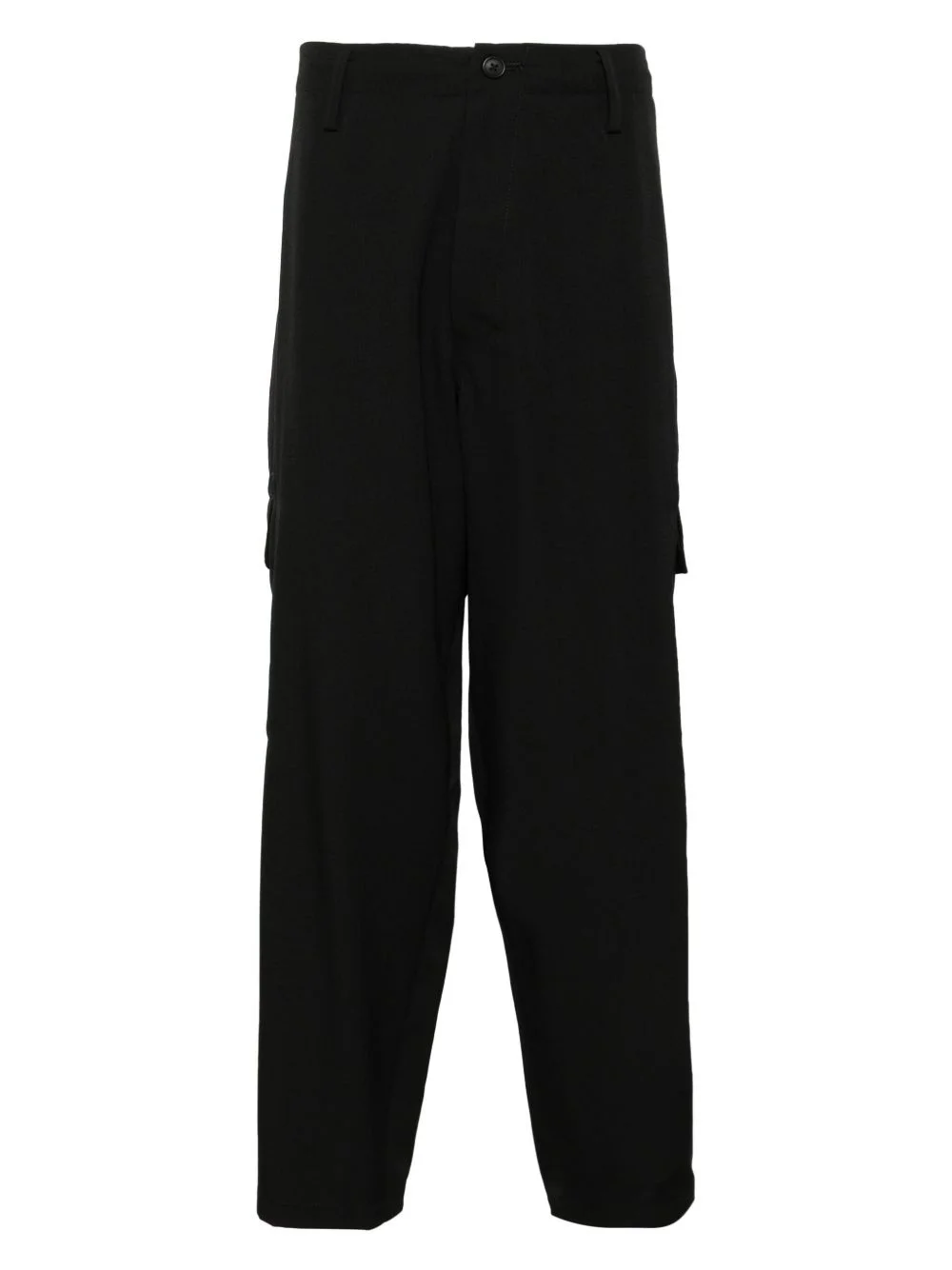 wool gabardine trousers Highlights - Black - Concealed front button, hook and zip fastening - Two side inset pockets - Two side cargo pockets - Two rear welt pockets Imported Composition Wool 100% SIZE & FIT Model measurements Height 6 ft 2 in(1.88 m) Bust/Chest 34.25 in(87 cm) Hips 34.64 in(88 cm) Waist 26.77 in(68 cm) FittingInformation Designed for a tapered leg, offering a loose unrestricted fit over the leg with a closer fit towards the ankle Adjust this piece’s waistband to your preference using the drawstring Made from a midweight non-stretch fabric