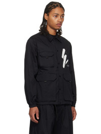 Stretch cotton gabardine jacket. · Spread collar · Press-stud closure · Logo graphic printed at chest · Cargo pockets and zip pockets · Drawstring at hem · Logo embroidered at elasticized cuffs · Storm flap at back · Zip pocket at interior · Full mesh lining Part of the Yohji Yamamoto POUR HOMME x New Era collaboration. Supplier color: Black