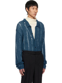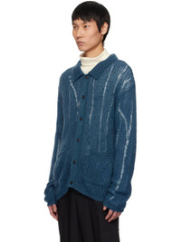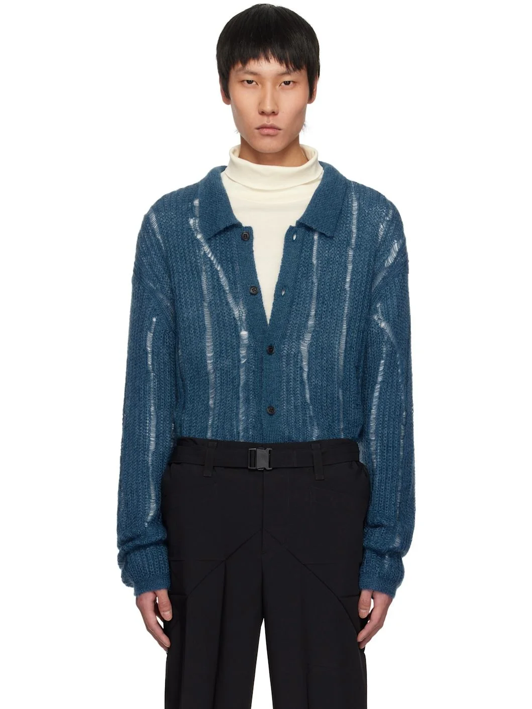 Blue Silk Kid Mohair Wool Buttoned Cardigan