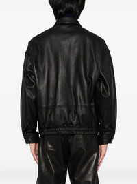 leather flight jacket Highlights - Black - Front zip fastening - Two side flap pockets - Buttoned-cuff sleeves Imported Composition Lining: Cotton 55%, Cupro 45% Outer: Calf Leather 100% SIZE & FIT Model measurements Height 6 ft 2 in(1.88 m) Bust/Chest 34.25 in(87 cm) Hips 34.64 in(88 cm) Waist 26.77 in(68 cm) FittingInformation Designed for a relaxed fit, this piece allows for comfort and movement when worn The elasticated hem allows for movement and a comfortable fit Soft leather has a supple and smooth construction offering some flexibility Washing instructions Specialist Cleaning