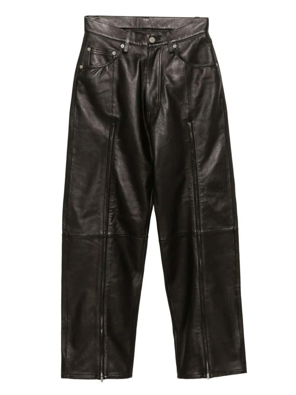 leather trousers Highlights - Cedar brown - Front button and zip fastening - Two side inset pockets - Two rear patch pockets Imported Composition Lining: Cotton 55%, Cupro 45% Outer: Sheepskin 100% SIZE & FIT FittingInformation Designed for a straight-leg, allowing for an unrestricted and comfortable fit over the leg Soft leather has a supple and smooth construction offering some flexibility Washing instructions Specialist Cleaning
