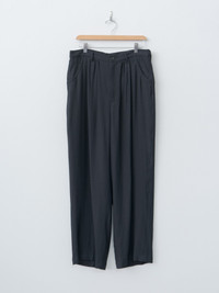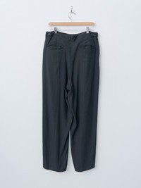 These wide trousers are constructed from a luxurious linen/acetate twill that balances fluid drape with crisp structure. It has a silk-like luster and natural wrinkles characteristic of fine linen. Details include front gathers, crease stitching, side tab adjusters at the waist, side pockets and back welt pockets. The silhouette is cut wide through the leg for a relaxed, flowing fit. - Made in Japan - 64% Linen / 36% Acetate - Available in Mist Green, Black - The model is 6'1"/185 cm and wears size 4/L