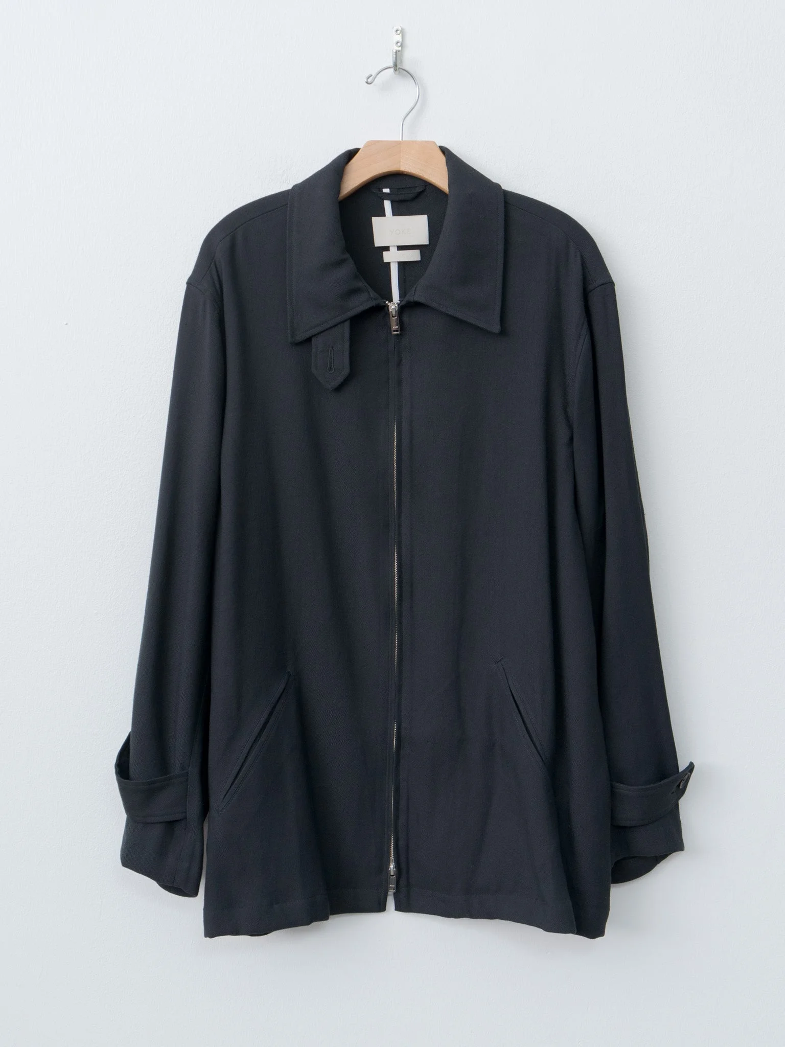 A YOKE signature zip up blouson made from luxurious linen/acetate twill that balances fluid drape with crisp structure. It has a silk-like luster and natural wrinkles characteristic of fine linen. The jacket is unlined with a wide fit and features cuff tabs, slanted side pockets and a clean front zip closure. - Made in Japan - 64% Linen / 36% Acetate - Available in Mist Green, Black - The model is 6'1"/185 cm and wears size 4/L