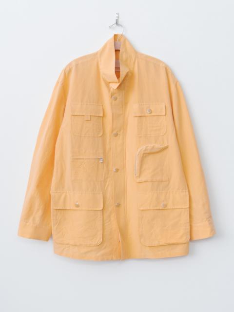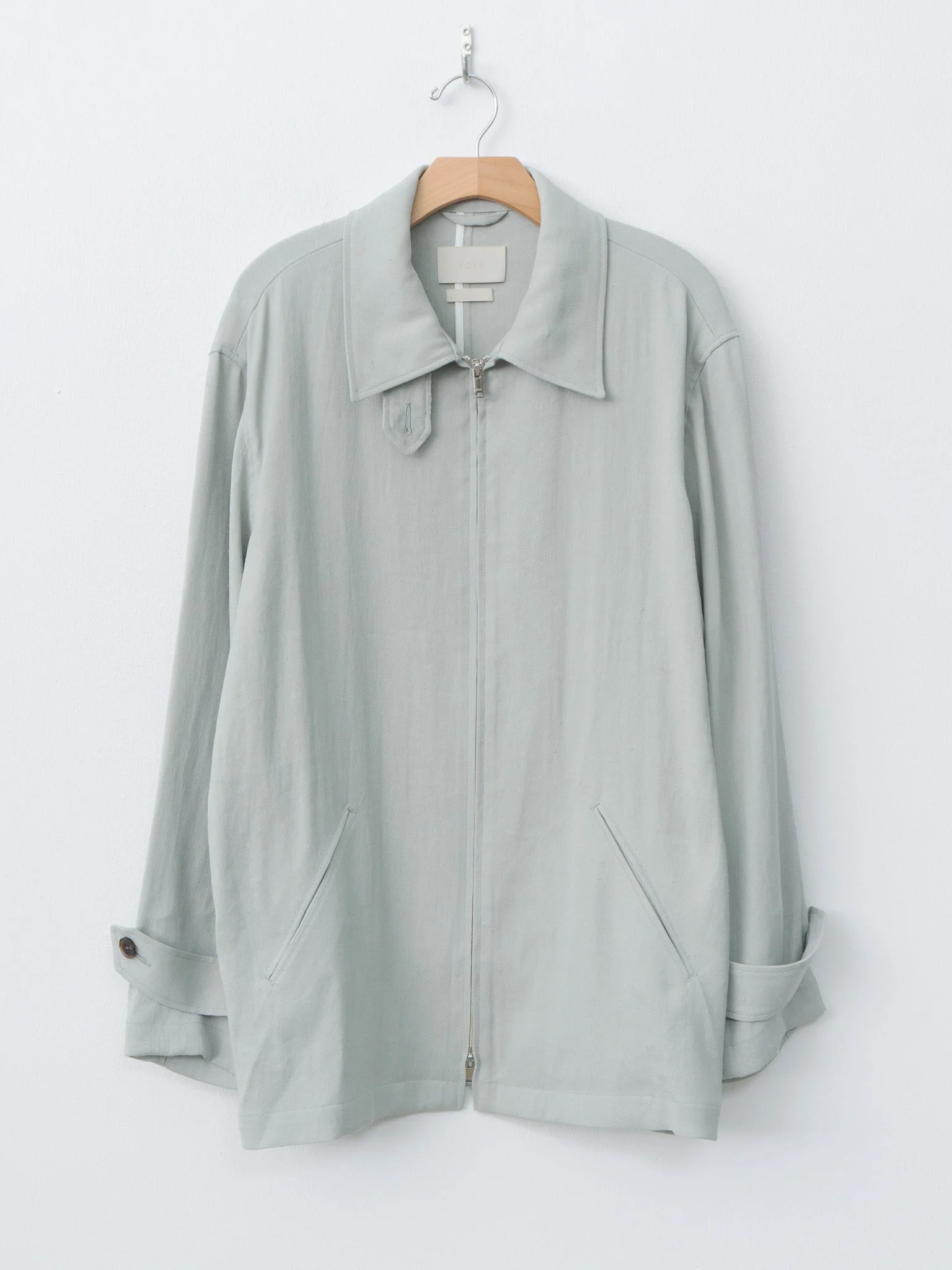 A YOKE signature zip up blouson made from luxurious linen/acetate twill that balances fluid drape with crisp structure. It has a silk-like luster and natural wrinkles characteristic of fine linen. The jacket is unlined with a wide fit and features cuff tabs, slanted side pockets and a clean front zip closure. - Made in Japan - 64% Linen / 36% Acetate - Available in Mist Green, Black - The model is 6'1"/185 cm and wears size 4/L