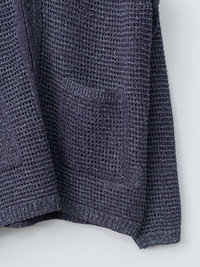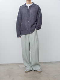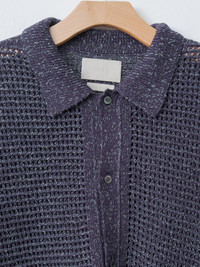 This mesh knit shirt cardigan is crafted from Gima cotton, known for its crisp and cool texture. The slub yarn combines two dyed tones, and an additional third color is layered in the knit to produce a nuanced, deep color mix. The mesh structure allows airflow and makes for a great warm weather layer. Other details include shell buttons, front patch pockets, and a wide fit silhouette that blends shirt and cardigan elements. - Made in Japan - 100% Cotton - Available in White, Blue, Purple - The model is 6'1"/185 cm and wears size 4/L