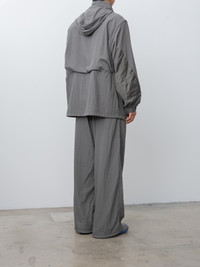 This multi-pocket utility blouson is constructed from ultra-lightweight, water-repellent nylon taffeta with a matte, soft texture. Inspired by the Swiss Army M-60 mountain jacket, it has been reimagined with a modern sensibility and features fully detachable sleeves, allowing it to be worn as a vest. Other details include a hidden hood in the collar, zip and snap button front and elasticated cuff. - Made in Japan - 100% Nylon - Available in Charcoal Khaki - The model is 6'1"/185 cm and wears size 4/L