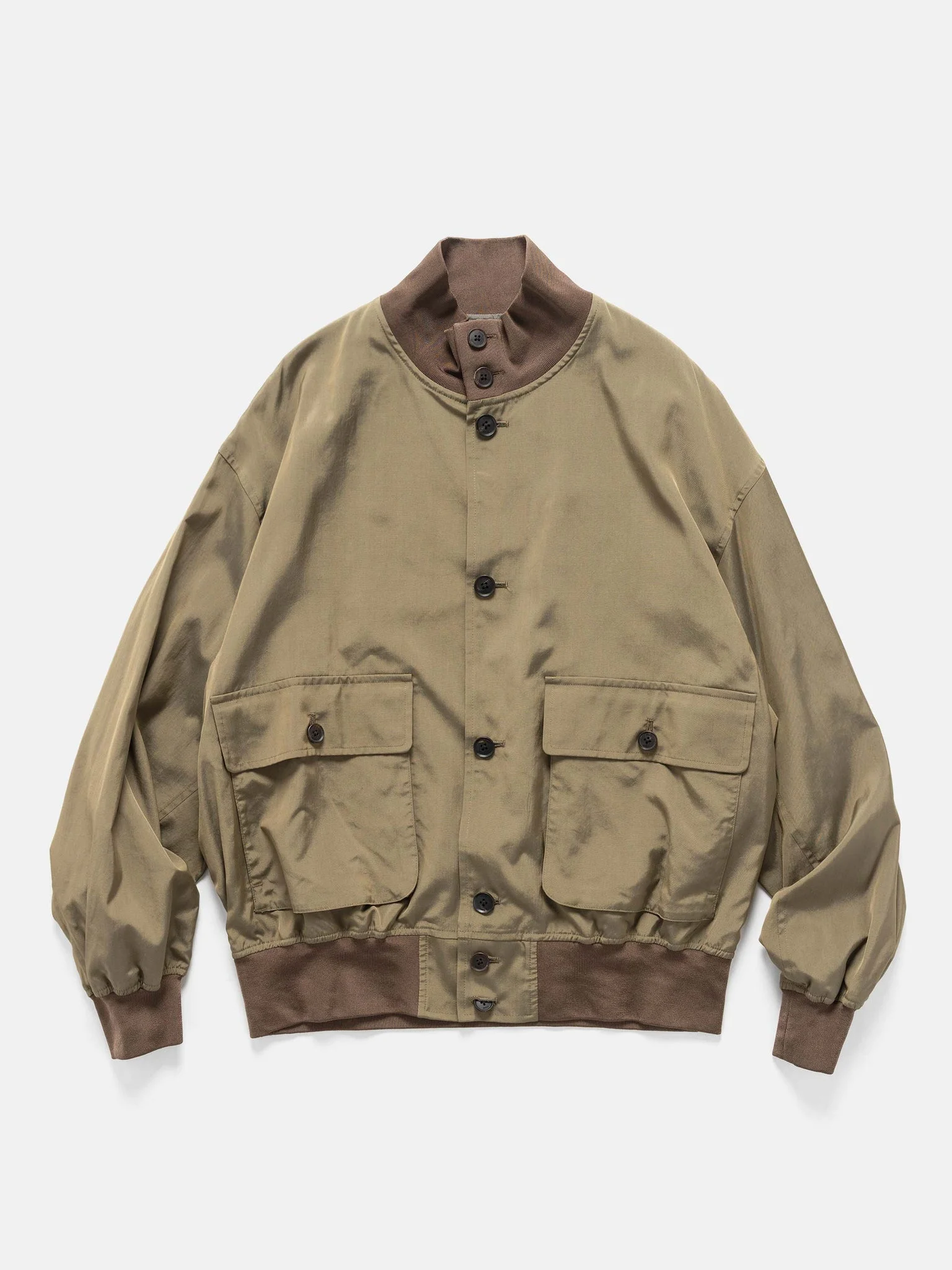 This driving blouson blends the polish of silk with the ease of nylon, giving you a lightweight layer that moves effortlessly between refined and casual settings. The high-density fabric has a subtle sheen and crisp hand, finished with natural wrinkles for a relaxed, lived-in texture. A high neck, ribbed details, and punched front buttons bring a modern, elevated edge to a classic silhouette. With its wide fit and unlined construction, it wears comfortably year-round and adds quiet sophistication to everyday dressing. DETAILS - YK25FW01060B - 71% Nylon, 29% Silk - High-denisty silk nylon fabric - Wash and sun dry finish - Wide fit - Stand collar - Button flap closure patch hand pockets - Punched button front closure - Ribbed collar, cuffs and hem - Made in Japan