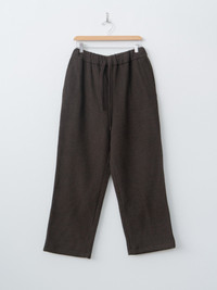 The Wool Fleece Lounge Pants are cut in a wide straight silhouette using soft wool fleece that balances warmth and lightweight comfort. Made from recycled wool in a specially knitted structure, the fabric is brushed on both sides and finished to trap air, creating volume without heaviness. The waistband features a wide elastic and drawcord for an easy, adjustable fit. - Made in Japan - 66% Wool, 26% Polyester, 4% Nylon, 4% Other - Available in Brown, Charcoal - The model is 6'1"/185cm and wears size 3/M - We recommend size 2 for 30 waist, 3/32 waist, 4/34 waist