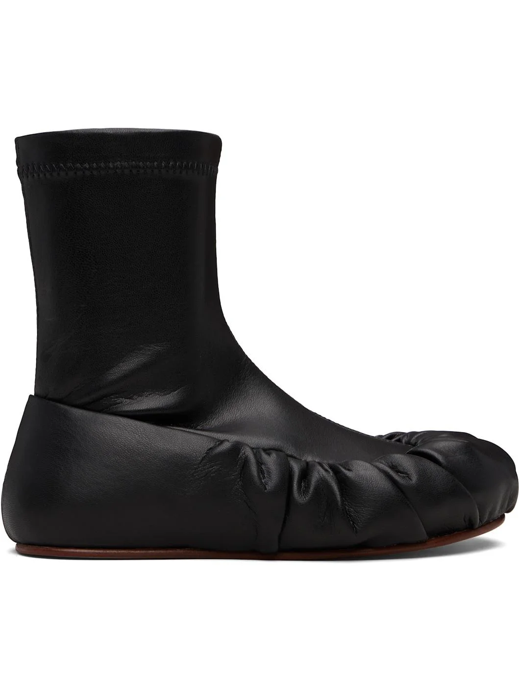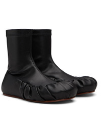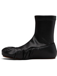 Ankle-high buffed faux-leather boots. · Gathering at toe · Elasticized collar · Jersey lining · Leather sole Supplier color: Black Upper: synthetic. Sole: rubber. Made in Portugal 252844M231012