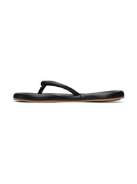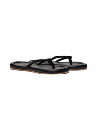 Grained faux-leather flip flops in black. · Open toe · Thong-style strap at vamp · Logo stamp at padded footbed · Padded midsole · Rubber sole Supplier color: Black Upper: synthetic. Sole: rubber. Made in Portugal 241844M234006