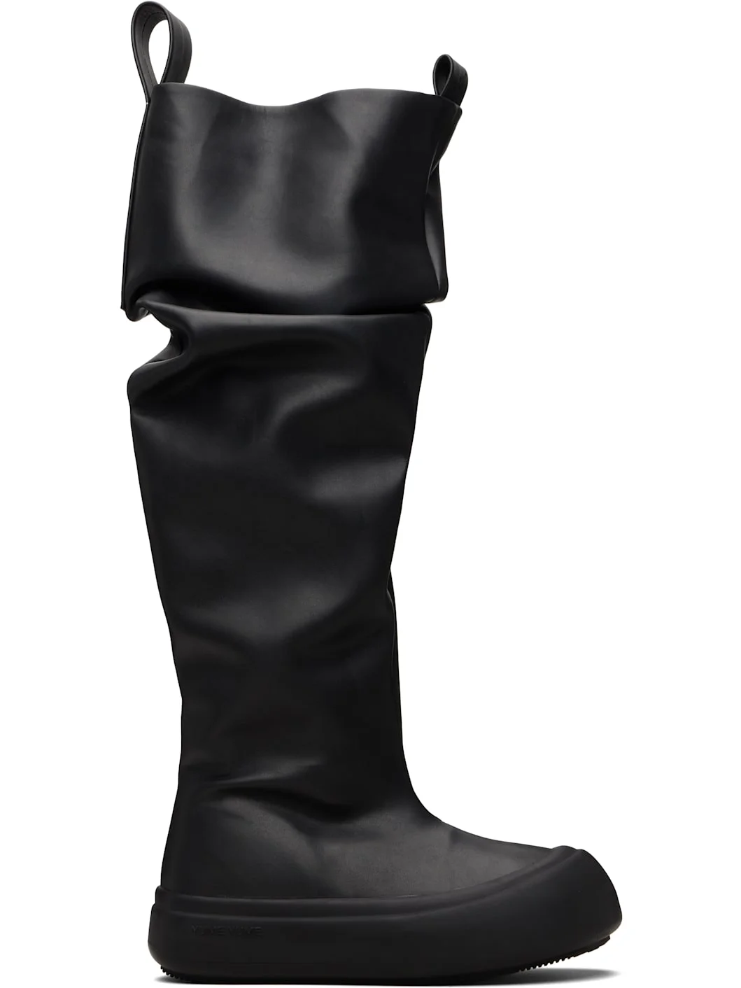 Knee-high buffed faux-leather boots. · Draping throughout · Logo-embossed pull-loops at collar · Logo-embossed rubber platform midsole · Treaded rubber sole · Platform: H1.5" Supplier color: Black Upper: synthetic. Sole: rubber. Made in Portugal 261844M228001