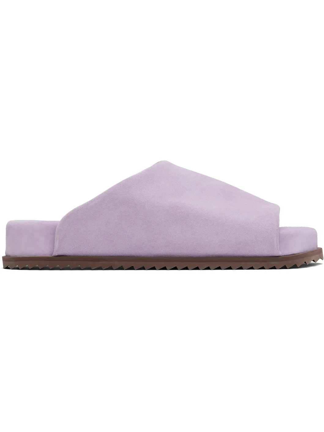 Faux-suede slip-on sandals in purple. · Open square toe · Logo embossed at padded faux-suede footbed · Faux-suede lining · Treaded rubber sole Supplier color: Ortensia suede Upper: synthetic. Sole: rubber. Made in Portugal 251844M234012