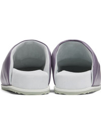 Padded buffed faux-leather slip-on loafers in purple. · Square toe · Logo stamp at molded footbed · Faux-suede lining · Treaded rubber sole Supplier color: Ortensia Upper: synthetic. Sole: rubber. Made in Portugal 251844M231012