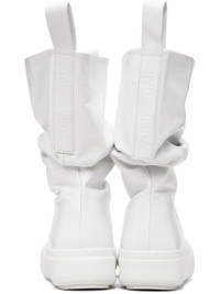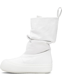 Mid-calf crinkled leather boots. · Gathering throughout · Logo-embossed pull-loops at collar · Grained faux-leather lining · Logo-embossed rubber platform midsole · Treaded rubber sole · Platform: H1.75" Supplier color: Wrinkled White Upper: leather. Sole: rubber. Made in Portugal 261844M223005