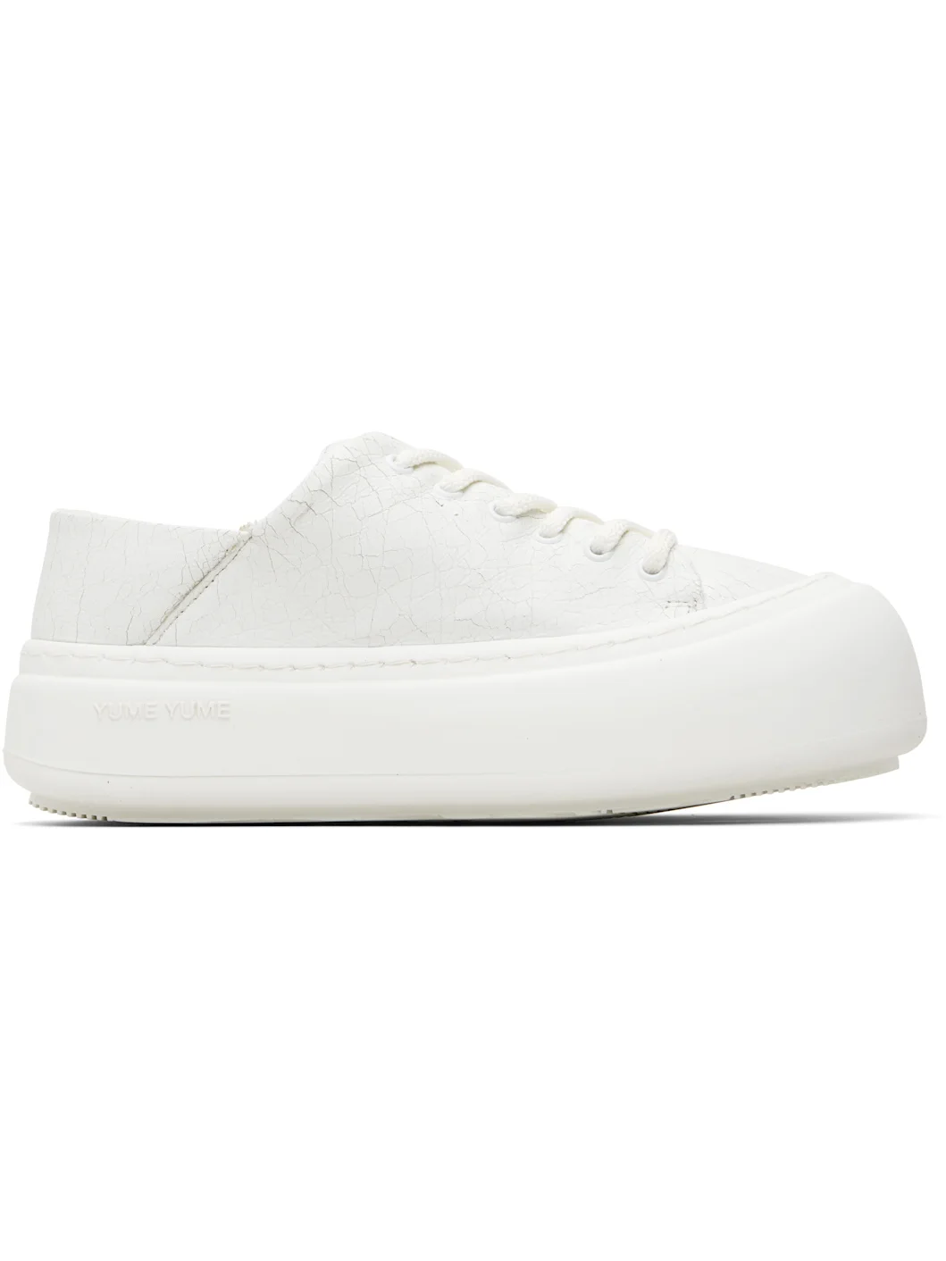 Low-top cracked faux-leather sneakers. · Lace-up closure · Padded tongue and collar · Mesh lining · Collapsible heel counter · Logo-embossed rubber platform midsole · Treaded rubber sole · Platform: H1.5" Supplier color: White cracked Upper: synthetic. Sole: rubber. Made in Portugal 261844M237004