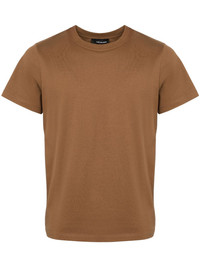 cashmere-blend T-shirt Highlights - Caramel brown - Embroidered logo to the front - Crew neck - Short sleeves Made in France Composition Cotton 90%, Organic Cashmere 10% SIZE & FIT FittingInformation Designed for a relaxed fit, this piece allows for comfort and movement when worn Made from a midweight non-stretch fabric, this piece offers minimal elasticity when worn